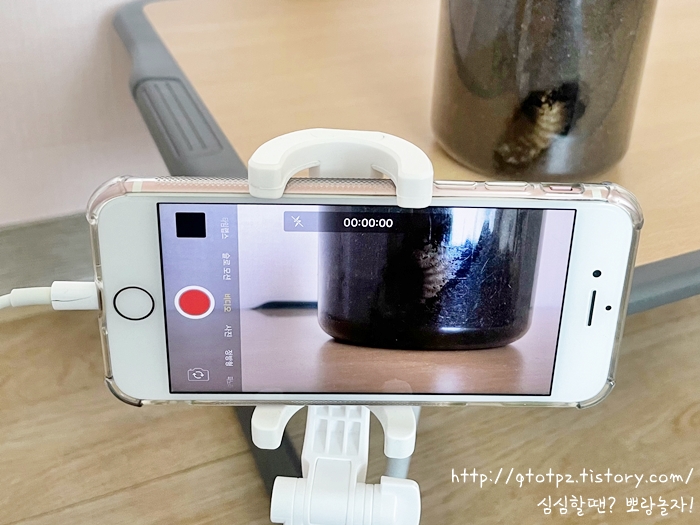 그렇게 전 네 마리의 번데기를 데리고 있습니다. ㅋㅋ 아직도 많은 애들이 있지만 촬영할 수 있을거란 보장이 없네요. 몇 날 며칠 쭉 찍어보고 싶지만 제 아이폰7은 고작 32GB라 저장공간이 터무니없이 부족해요. 한 시간도 못 찍음. ㅋㅋㅋ 그간 찍고 지우고, 찍고 지우고의 연속이었고 찍다 도중에 어플이 사망해서 파일을 못 살린 것도 있었어요. ㅠㅠ 뭘 하려면 장비가 중요하단 걸 이렇게 깨닫습니다. ㅋ
