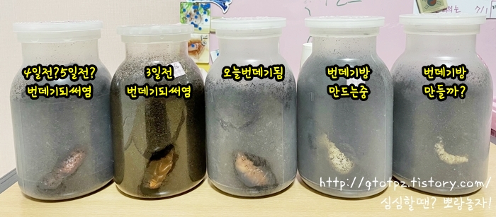 지이이이인짜 오랜만에 장수풍뎅이 소식입니다. ㅋㅋ 1월 이후 별 소식이 없었으니까 세 달 만에 빅뉴스를 가지고 왔습니다. 그 사이는 별 일 없었어요. 한 번씩 발효톱밥을 교체해줬고, 날파리