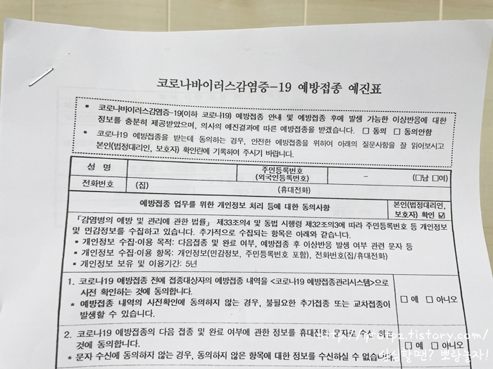 접종 후 병원서 잠시 대기했던 걸 제외하곤 일반적인 예방접종하듯 똑같았어요. 특이사항 전혀 없었어요. 이래도 되나 싶을 정도로. ㅋㅋㅋ 예진표 쓰고 체온 측정, 아픈 곳 없냐고 묻고 열나거나 아프면 타이레놀 먹으라가 끝. 싱거웠어요. 희귀 혈전증 발생 확률이 아무리 적어도 내가 걸리면 100%인데 순간 겁도 났다가 아니야, 이제 나는 더 마음 편하게 활동할 수 있어! 기대도 생겼다 맘이 오락가락했어요. 며칠 지나면 후자로 기울며 웃을 수 있겠죠. :D