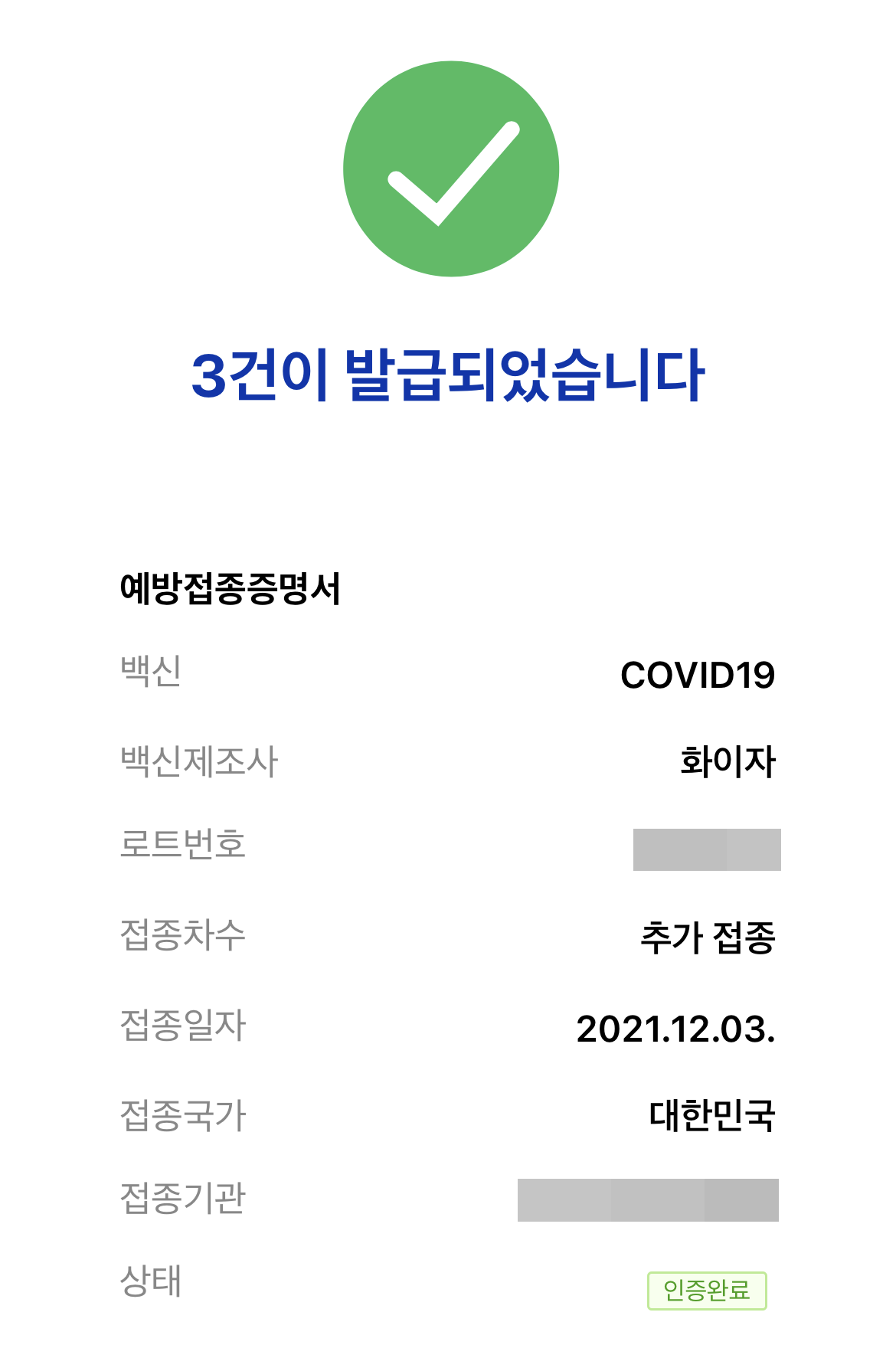 금요일에 맞았는데 아직까진 괜찮습니다. 팔의 근육통은 2차접종만큼 있고, 경미한 두통과 37도 초중반까지의 미열이 있긴 했는데 약을 먹지 않았습니다. 주말이고 집에 있으니까 별 걱정이 없네요. 쿠브(COOV)에는 이번에 접종한 내역이 뜨는데 카카오톡이나 네이버에 QR체크인으로 접종내역 불러오기엔 안 뜨더라고요. 3차접종에 대한 방침이 뜬 지 얼마 안 됐으니 그렇겠죠. 카카오톡에서 2차접종 마치고 라이언이 쌍따봉 해줬는데 3차접종엔 뭘 해줄까요? 은근 기대됩니다.