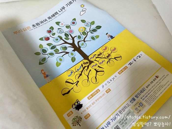 올 초부터 오복이랑 집에서 '뿌리깊은 초등국어 독해력 1단계' 문제집 풀었었어요. 시, 설명문, 편지, 위인전, 뉴스 등등 다양한 지문 읽기에 도움되라고 시작한 건데 그건 제 생각이고 오복이가 마지막까지 달릴 수 있었던 이유는 CU 기프티콘 때문이었어요. 뿌리깊은 초등국어 독해력 나무기르기 완성하면 참여자 전원 CU 기프티콘 1천 원권을 준다고 되어있었거든요. 그래서 몇 회 차 남지 않았을 때 바짝 달렸는데 왜 안 오죠? ㅋ 동심 파괴 마더텅.