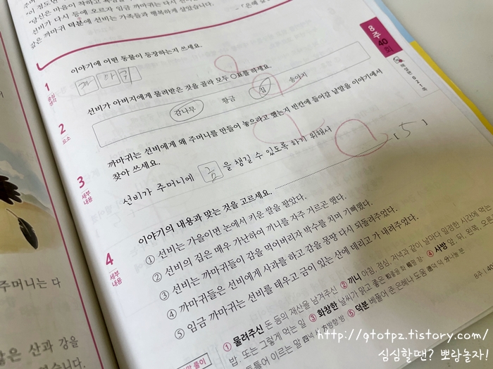 오복이가 왔냐고 몇 번 물었는데 때마다 전화해봐야지 하곤 잊고 있네요. 저녁에 확인하니 때를 놓쳐서. 현생살기도 바빠 죽겠는데 이것까지 신경 써야 하나요. ㅠㅠ 휴. 그냥 제가 보상하고 치우려고요. '뿌리깊은 초등국어 독해력 2단계' 이어서 시작했는데 급 빈정상해요. ㅋ 시작은 이게 아니었는데, 잘하고 있었는데 본질과 멀지만 짜게 식은 마음. 여기까지가 끝인가보오. ㅠㅠ