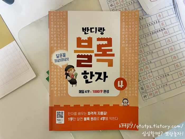 오복이가 한자를 좋아해서 한자 책과 워크북들을 좀 봤어요. 국어, 수학 문제집은 끝까지 푸는데 한자는 늘 중도포기. 아무래도 쓰는 것이 많아서 의지를 꺾는 것 같더라고요. 오복인 쓰면서 외우는 스타일이 아니거든요. ㅠㅠ 빼곡한 한자 쓰기엔 영 흥미를 붙이지 못했지요. 쌓여있는 워크지들. ㅋㅋㅋㅋㅋ