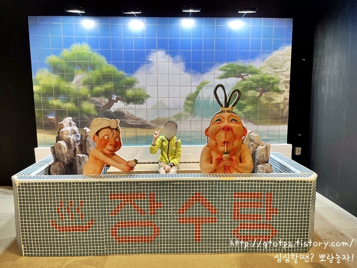코로나19를 비웃듯 어린 친구들이 많이 모였어요. (동시간대 서웊숲 씨어터 1관에서 백희나 작가님 원작인 <알사탕> 뮤지컬이 공연된다는 점! ㅋㅋ) 장수탕에 푹 빠질 수 있도록 티켓 교환처는 목욕탕 매표소처럼 꾸며져 있었고, 입장 전엔 부모님 세대가 어렸을 때 갔음직한 목욕탕이 기념품 구매와 적절하게 어우러져있었습니다. 포토존도 있고 오밀조밀 공연 전후로 작품에 스며들기 좋았어요. 어린이 공연 조으다. ㅋㅋㅋ