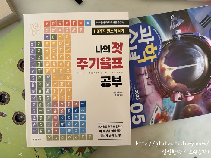 그런데 재미있는건 아이가 서점에서 주기율표 책을 보고 관심을 표했다는 것이다. 원래 부모란 자녀와의 아주 작은 공통점을 확대해석하여 호들갑떨기 마련이다. 원소별 이미지와 캐릭터를 보고 꽂혔는데 당시엔 비슷한 도감류의 다른 책을 사며 넘어갔다. 하지만 미련 남은 난 기어코 손에 넣고 만 것이다. 「나의 첫 주기율표 공부 - 화학을 몰라도 이해할 수 있는 118가지 원소의 세계」란 책을. 아이가 서점에서 보고 원했던 책은 아니었으나 원소별로 하나, 하나 짚어가는 도감류의 형식은 맞아서 표지를 보자마자 좋아했다. (어린이 교양 과학 책이 일반 교양 과학으로 옮겨온 것뿐이다!)
