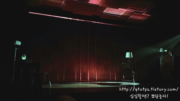 시작 시간보다 조금 일찍 입장하니 파도소리가 잔잔히 깔리고 천둥소리도 간간이 들렸습니다. 스모그가 짙게 깔려 미스터리한 분위기를 자아내고 있더라고요. <르 마스크>라는 뮤지컬을 보러 같은 극장에 온 적 있는데요. 그때는 무대가 가득 차 있었거든요. 기억 미화인지 좀 아늑한 느낌도 들었는데 이번엔 같은 극장 맞나 싶을 정도로 분위기가 달라졌어요. <르 마스크>를 비교적 최근에 봐서 극에 따라 이렇게 달라지는구나 체감했지요. 텅 비어있는 느낌에 아주 어두운...