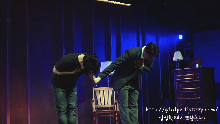 극 중 어떤 장면에서 웃음이 터지는 소리가 마이크를 먹어 배우도, 객석도 빵 터지는 작은 사고(?)가 있었어요. 다음 대사 못 쳤으면 진짜 대형사고였을 것 같았거든요? 그걸 수습하며 대사를 이어가는 걸 보고 프로라 느꼈어요. 그밖에 애드립일까 궁금했던 몇몇 장면이 있었는데(의자를 거의 던지듯 돌리면서 흔적을 찾는 장면이라든지, 있는데 까먹었어요. ㅠㅠ) 이렇게 말아주면 회전하러 오는 사람들은 너무 재미있겠더라고요.