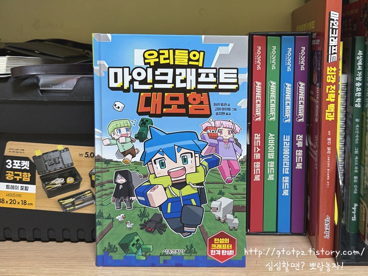 서울문화사에서 나온 「우리들의 마인크래프트 대모험」 인데 주인공이 마침 아이랑 같은 학년이라서 잘됐다 싶었죠. 너무 만화책이면 글밥 늘려야 하는 상황에 별로였을텐데 (마인크래프트 유튜브와 게임 때문에 책을 점점 등한시하고 있어요. ㅠㅠ) 소설 형식으로 그림이 있긴 하지만 어느 정도 두둑한 분량(288쪽)이라 마음에 들었습니다. 아이들이 도감, 백과에 절어있을 때 즈음 2차 창작물로 접하면 흥미를 가지고 읽을 수밖에 없을 거예요.